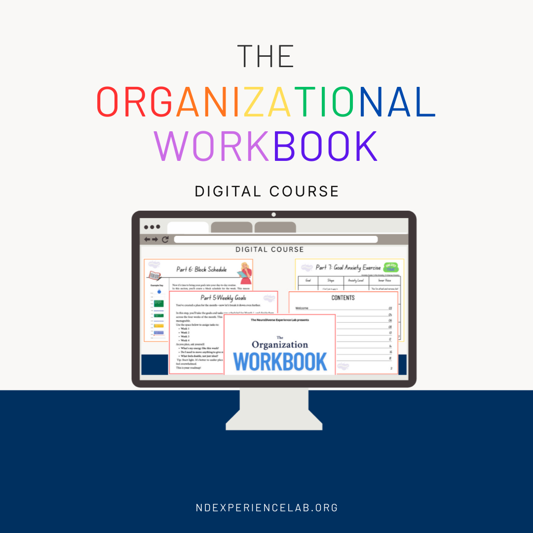 Have you found it hard to set goals, follow through on them, or make decisions? Especially when traditional productivity advice just doesn’t work for you? Building on our Organization Workbook guide, we’ve created a self-paced digital course designed to support neurodivergent minds. This course helps you understand executive functioning, explore why certain tasks feel challenging, and develop personalized, neuro-affirming strategies for organization and productivity, without shame, pressure, or one-size-fits-all “quick fixes”.